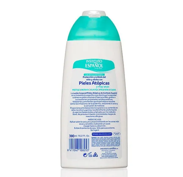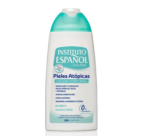 La Loción Corporal de Instituto Español es un tratamiento específico que disminuye la sequedad cutánea en pieles atópicas e hipersensibles gracias a sus excelentes propiedades anti descamativas, hidratantes y emolientes que la piel atópica requiere. Limita las irritaciones de la epidermis, reduciendo el picor y la sensación de malestar.