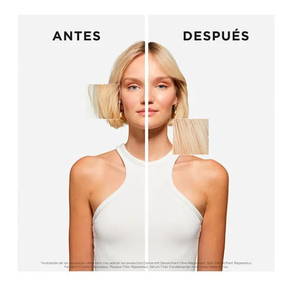 La gama Première, con su doble acción reparadora, rompe el ciclo de daño persistente en el cabello descalcificado con hasta un +97% de refuerzo en la estructura interna, recrea en un 99% la fuerza original del cabello y ofrece una profunda penetración de activos en el interior de la fibra capilar para conseguir reducir el daño en la superficie y en el interior del cabello.