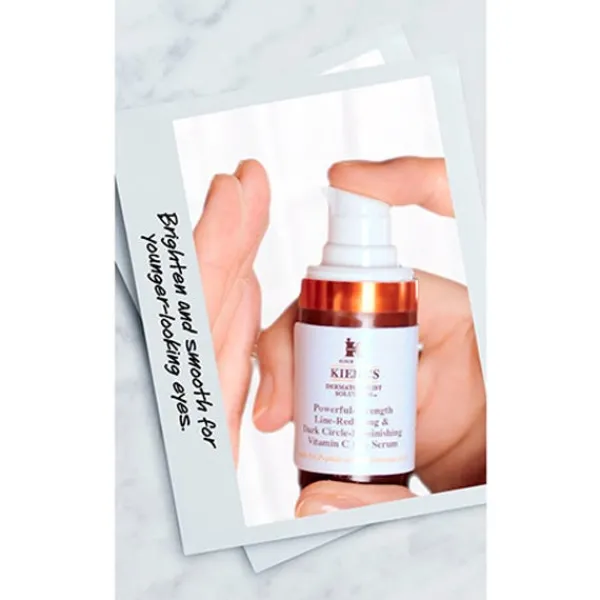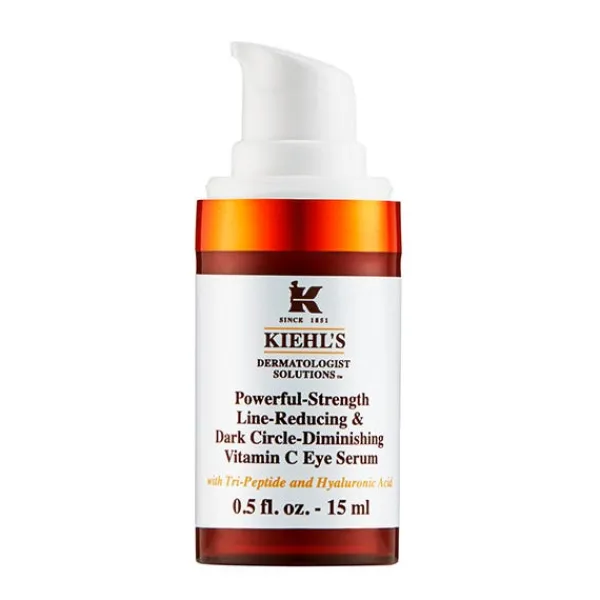 El contorno de ojos Powerful Strength Line Reducing Concentrate Eye de Kiehl´s con vitamina C al 10,5% ayuda a reducir la aparición de las líneas de expresión y patas de gallo, y aporta luminosidad instantánea a la zona del contorno de ojos. Mejora visiblemente la aparición de ojeras con el tiempo y gracias a su fórmula mejorada reduce la aparición de bolsas.