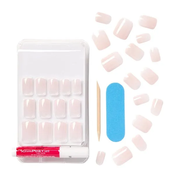 El kit de uñas incluye 28 uñas postizas, pegamento de gel rosa de peso neto 2 g, mini lima de uñas y palito de manicura.
