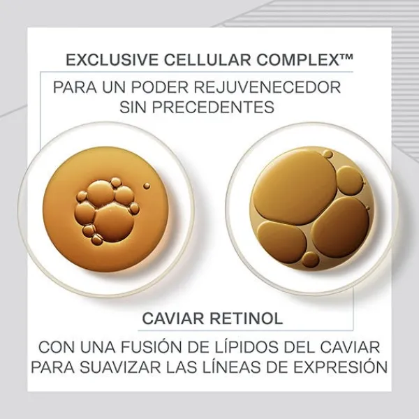 • Gracias a la combinación única de retinol derivado del caviar y lípidos del caviar, el Caviar Retinol, activa el proceso de regeneración natural de la piel para eliminar los signos del envejecimiento.