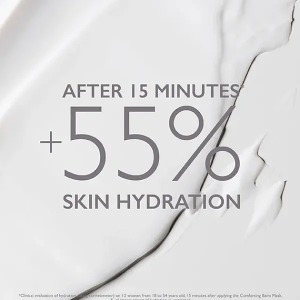 Comforting Balm Mask nutre, hidrata y revitaliza la piel a la vez que proporciona una sensación de confort a la piel seca. Gracias a la manteca de karité nutritiva y al extracto de Rosa centifolia relajante, reduce la sequedad y la tirantez de la piel.
