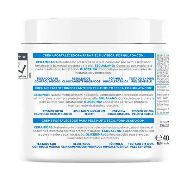 Crema hidratante para el cuidado de la cara, el cuerpo y las manos en pieles muy secas y estresadas, adecuado para bebés, niños y adultos