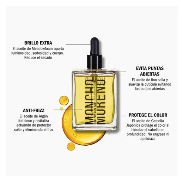 Sérum sellador de cutículas que aporta brillo y sedosidad. Elixir de aceites naturales que hidrata el cabello sin ensuciarlo y elimina el frizz. Ideal para todo tipo de cabellos.