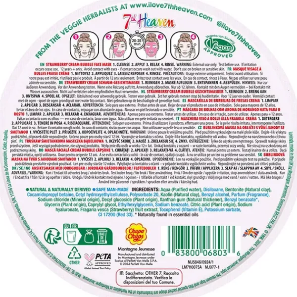 Disfruta de una explosión burbujeante de hidratación con microburbujas que limpian, exfolian y refrescan la piel con nuestra MASCARILLA BUBBLE STRAWBERRY CREAM CHUPA CHUPS. Contiene poder hidratante del ácido hialurónico que aumenta la hidratación, manteniendo la piel con un aspecto y una sensación saludable.