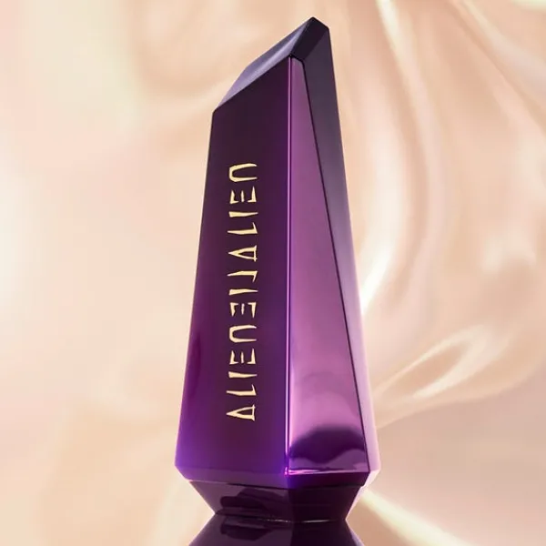 Descubra el aura benefactora y la estela solar del Eau de Parfum Alien mediante su nueva línea de productos corporales.