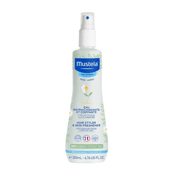 El agua para peinar refrescante con camomila BIO perfuma y refresca la piel de bebés* y niños. También facilita el cepillado y da brillo al cabello.