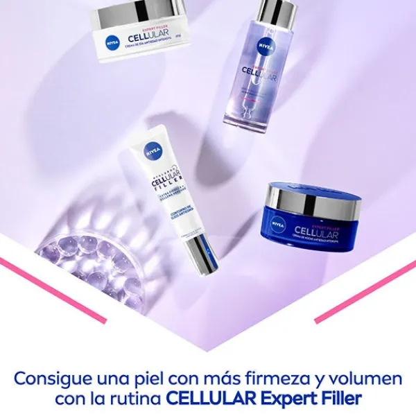 NIVEA Cellular Expert Filler Contorno de Ojos y Labios está enriquecido con Ácido Fólico puro y dos tipos de Ácido Hialurónico, poderosos activos antiedad que aportan un efecto rellenador en 24 horas*. Reafirma el contorno de ojos y labios y rellena las arrugas y líneas de expresión. El Ácido Fólico puro aporta nueva vida a las células de la piel y ayuda a reparar sus fibras*, promoviendo una piel más firme y rellena. Contiene Micro y Macro Ácido Hialurónico, dos ingredientes antiedad conocidos por rellenar las arrugas eficazmente, alisar la piel e hidratar intensamente. Al instante, la piel se siente tonificada. En 1 semana, la zona de los ojos y labios se siente más firme, reduciéndose las arrugas y patas de gallo visiblemente. En 4 semanas, el contorno de ojos se redensifica y rejuvenece. *Testado en células de la piel