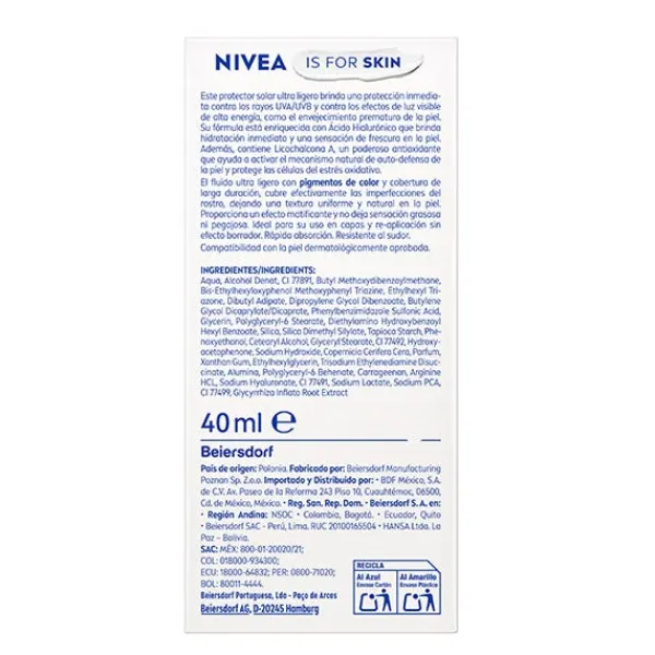 Este protector solar ultra ligero protege la piel sana de los rayos UVA/UVB y de los efectos de la luz visible de alta energía, como el envejecimiento prematuro de la piel. Está enriquecida con Ácido Hialurónico y Licocalcón A, un potente antioxidante. La fórmula con Ácido Hialurónico hidrata inmediatamente y proporciona una sensación de frescor en la piel.