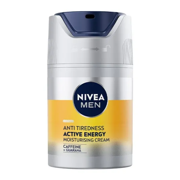 Enriquecida con cafeína de origen 100% natural, la Crema Hidratante NIVEA MEN SKIN ENERGY hidrata y refresca al instante la piel masculina, combate los signos de cansancio revitalizándola de forma duradera, y mejora el estado de la piel para poder mostrar un aspecto sano y lleno de energía. Una crema hidratante especialmente desarrollada para revitalizar la piel cansada del hombre. Fórmula dermatológicamente comprobada. ¿Piel cansada? Que no se te note. Piel llena de vida de forma duradera con NIVEA MEN SKIN ENERGY Crema Hidratante.