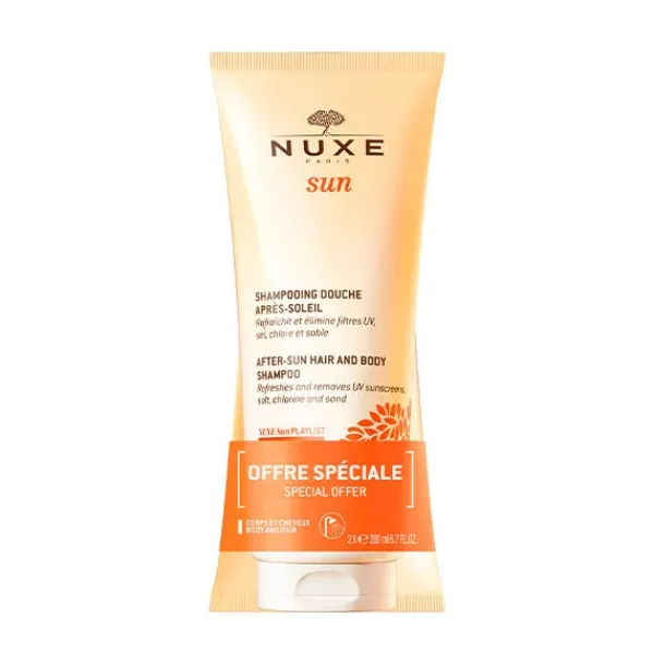 El champú para el cabello y el cuerpo después del sol proporciona una limpieza suave.