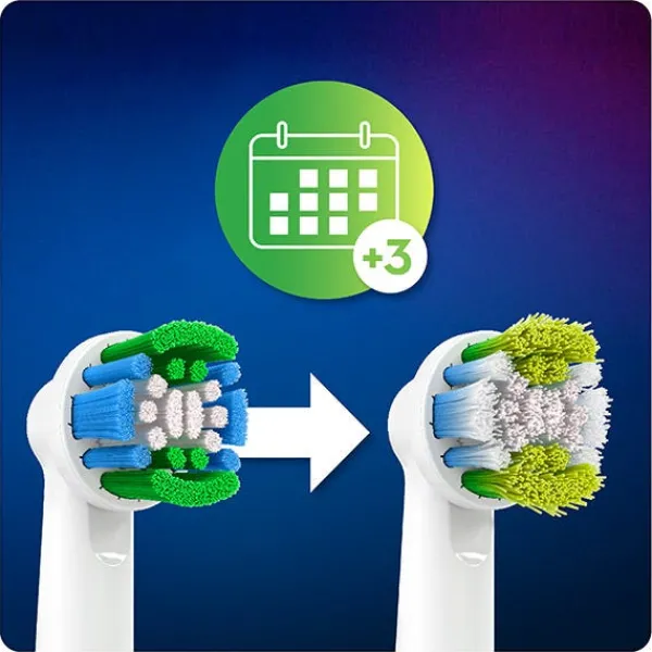 Los cabezales de recambio Precision Clean mejorados de Oral-B se desarrollan con la tecnología CleanMaximiser, que vuelve verdes los filamentos amarillos para proporcionar la mejor limpieza y un rendimiento óptimo del cabezal. Compatible con todos los mangos Oral-B, excepto Pulsonic e iO.