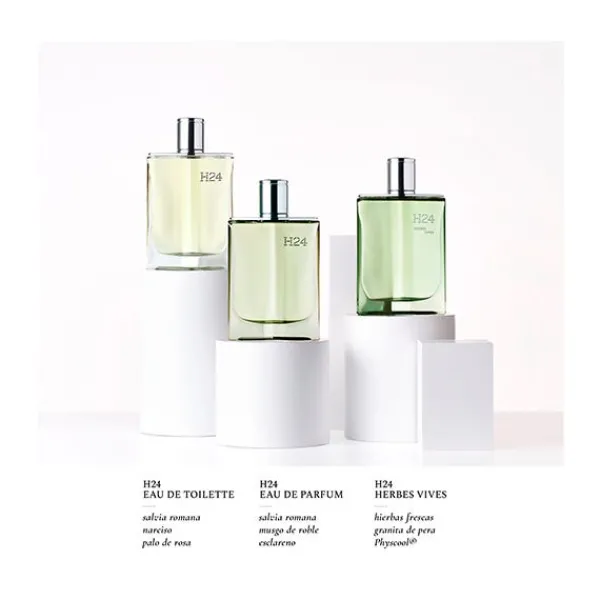 H24 Eau de parfum, aromático y amaderado, se basa en el generoso poder vegetal de la envolvente salvia, el denso musgo de alta tecnología y el cálido y vibrante esclareno.