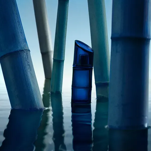 El nuevo frasco azul intenso de Kenzo Homme es una oda a la poesía. Su forma refleja la fuerza y flexibilidad del bambú. Su tapón biselado evoca el corte de una katana, espada utilizada por los samuraï.