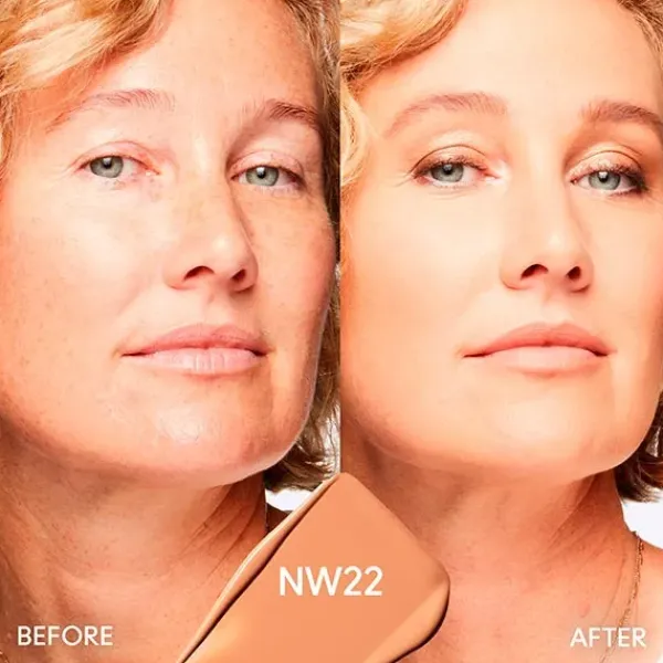 Esta base de maquillaje de acabado mate aterciopelado, cobertura media modulable y 24 horas de duración permanece inalterable en tu piel.