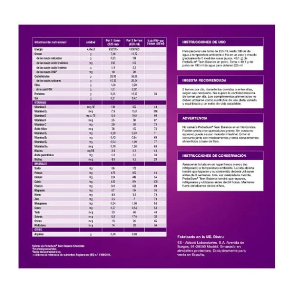 PediaSure Teen Balance® es un complemento alimenticio con proteínas, vitaminas y minerales, especialmente formulado para satisfacer las necesidades nutricionales de adolescentes de 11 a 16 años.