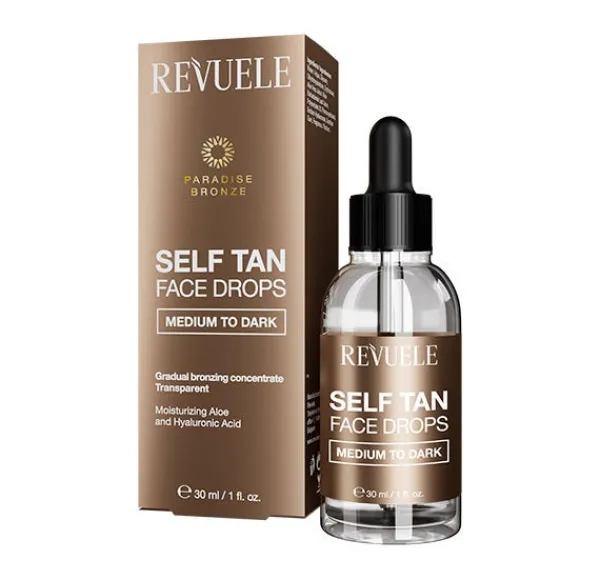 REVUELE GOTAS AUTOBRONCEADORAS PARA LA CARA DE CLARO A MEDIO. Este suero de bronceado gradual crea un tono bronceado perfectamente uniforme y de apariencia natural en cuestión de horas. Sólo una gota aumentará la luminosidad de tu piel y te brindará ese increíble y saludable brillo veraniego. ¡Controla tu bronceado deseado y disfruta de un rostro bañado por el sol, fresco e hidratado durante todo el año!