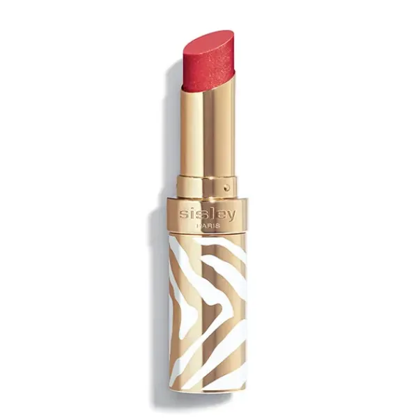 Su carcasa, similar a la de una joya, está adornada con rayas de cebra blancas y doradas, como se ve en la colección Le Phyto-Rouge. Está disponible en formato recargable.