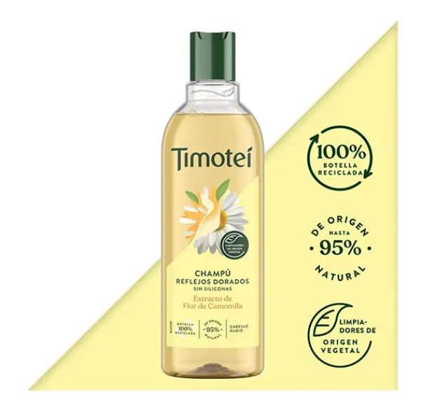 Descubre Timotei champú reflejos dorados para cabello rubio.