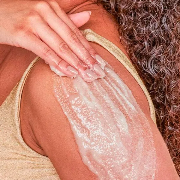 Elaborado con azúcar, manteca de karité, vainilla, oro coloidal y una variedad de aceites naturales como aceites de onagra, aguacate, macadamia, almendras dulces, cártamo y naranja para dejar la piel con una buena sensación y un olor delicioso.