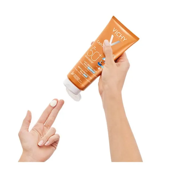Fórmula resistente al agua con protección UV de muy amplio espectro, que mantiene su eficacia incluso en el agua y después del baño.