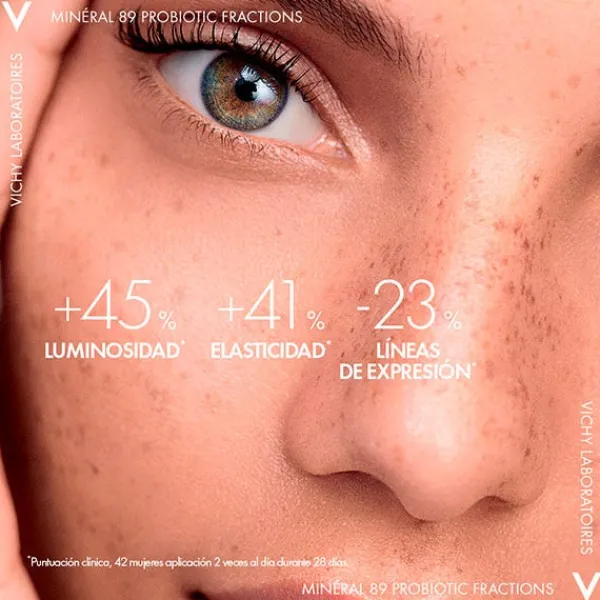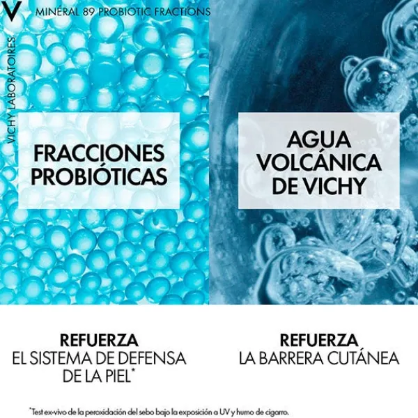 Compuesto por fracciones probióticas cultivadas con Agua Volcánica de Vichy y potenciadas con vitaminas antioxidantes como la niacinamida, regenera los signos visibles de la salud de la piel (luminosidad, elasticidad, líneas de expresión).